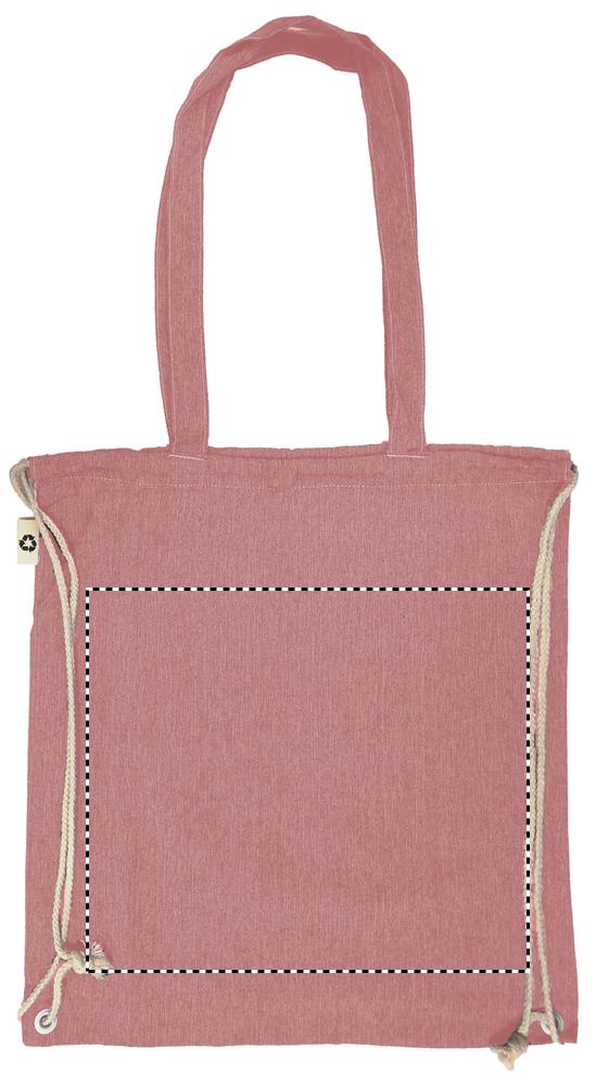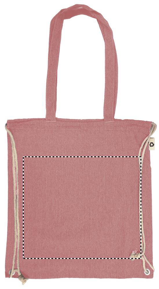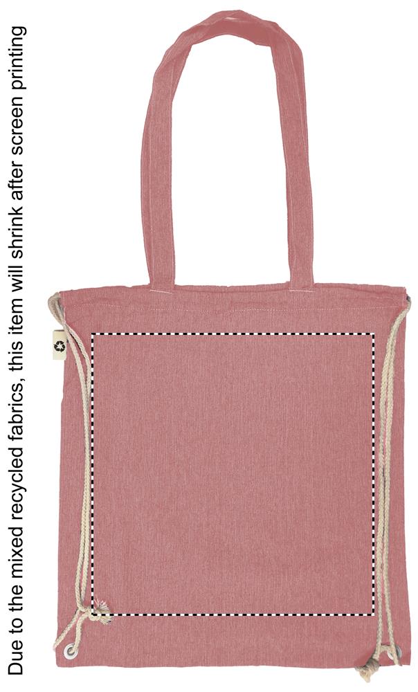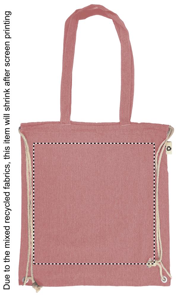 2 tone (recycelte Baumwolle und recyceltes Polyester) Einkaufstasche mit Kordelzug und langen Henkeln (20%/80%). ca. 140 gr/m². Dieser Artikel kann nach dem Bedrucken schrumpfen.