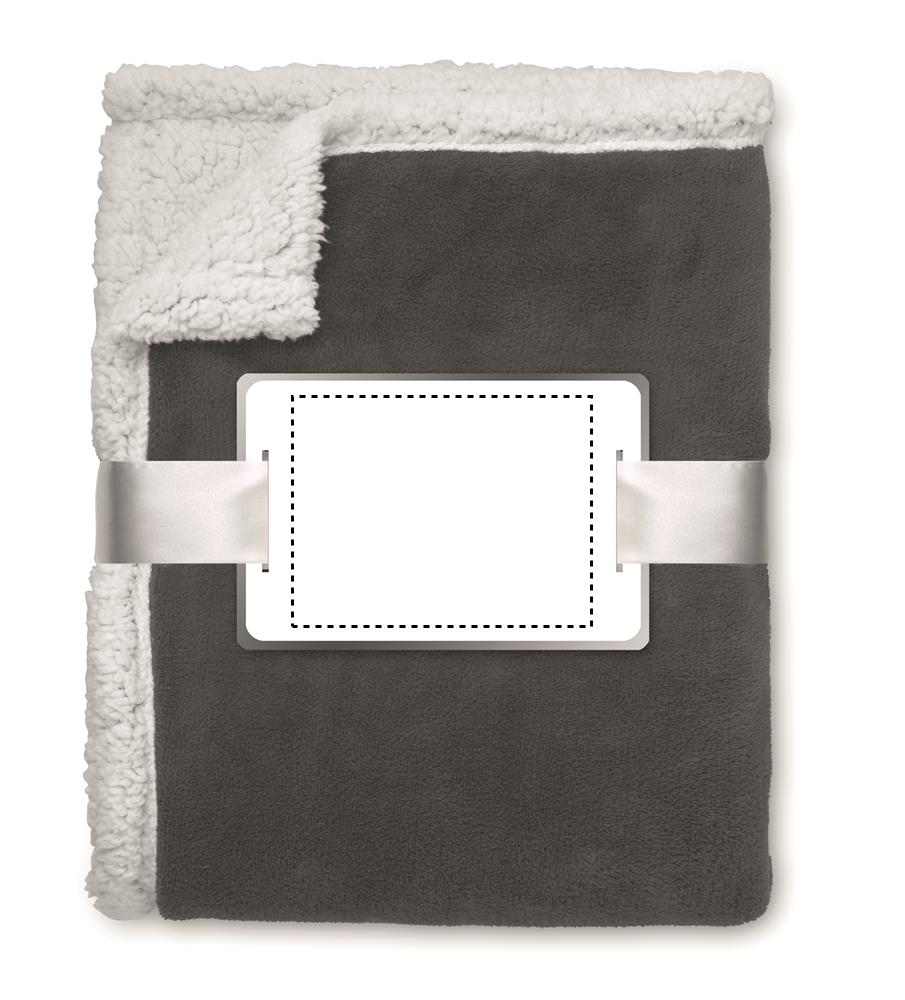 Coral Fleece Decke 200 g/m². Rückseite in Schafsplüsch-Optik aus 220 g/m² Polyester Sherpa. Inkl. Band mit bedruckbarer Karte.